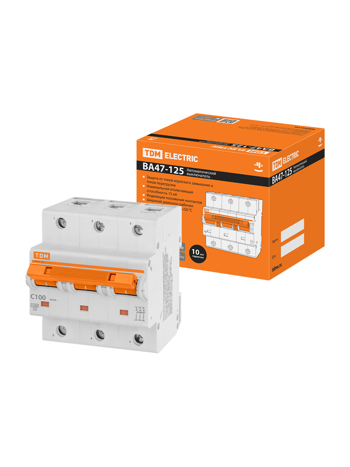 Наименование: Авт. выкл. ВА47-125 3Р 100А 15кА х-ка С TDM