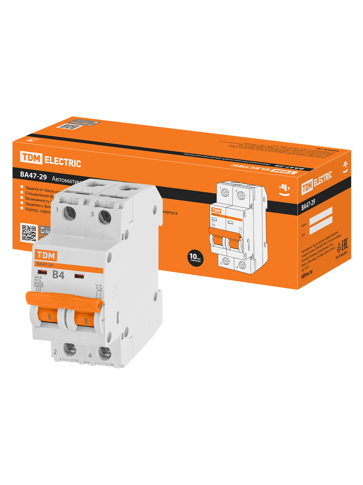 Авт. выкл.ВА47-29 2Р 4А 4,5кА х-ка В TDM