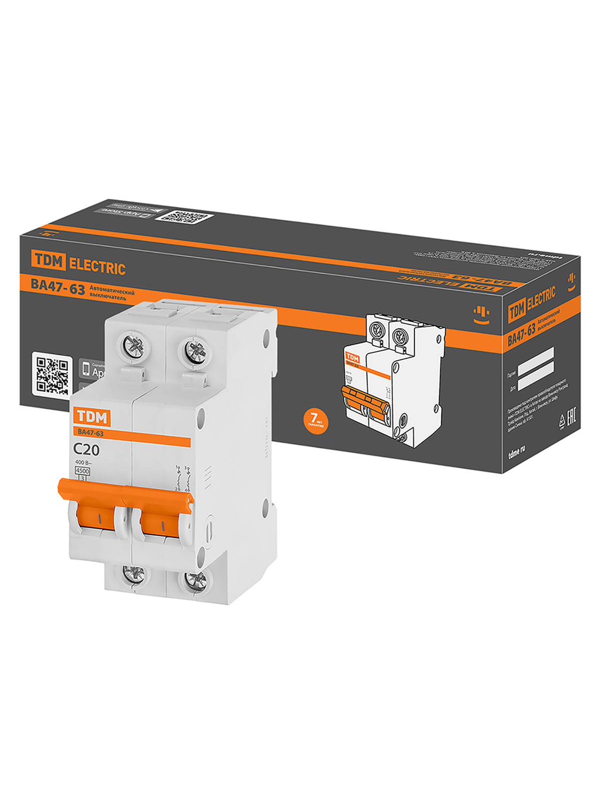 Наименование: Авт. выкл.ВА47-63 2Р 20А 4,5кА х-ка С TDM