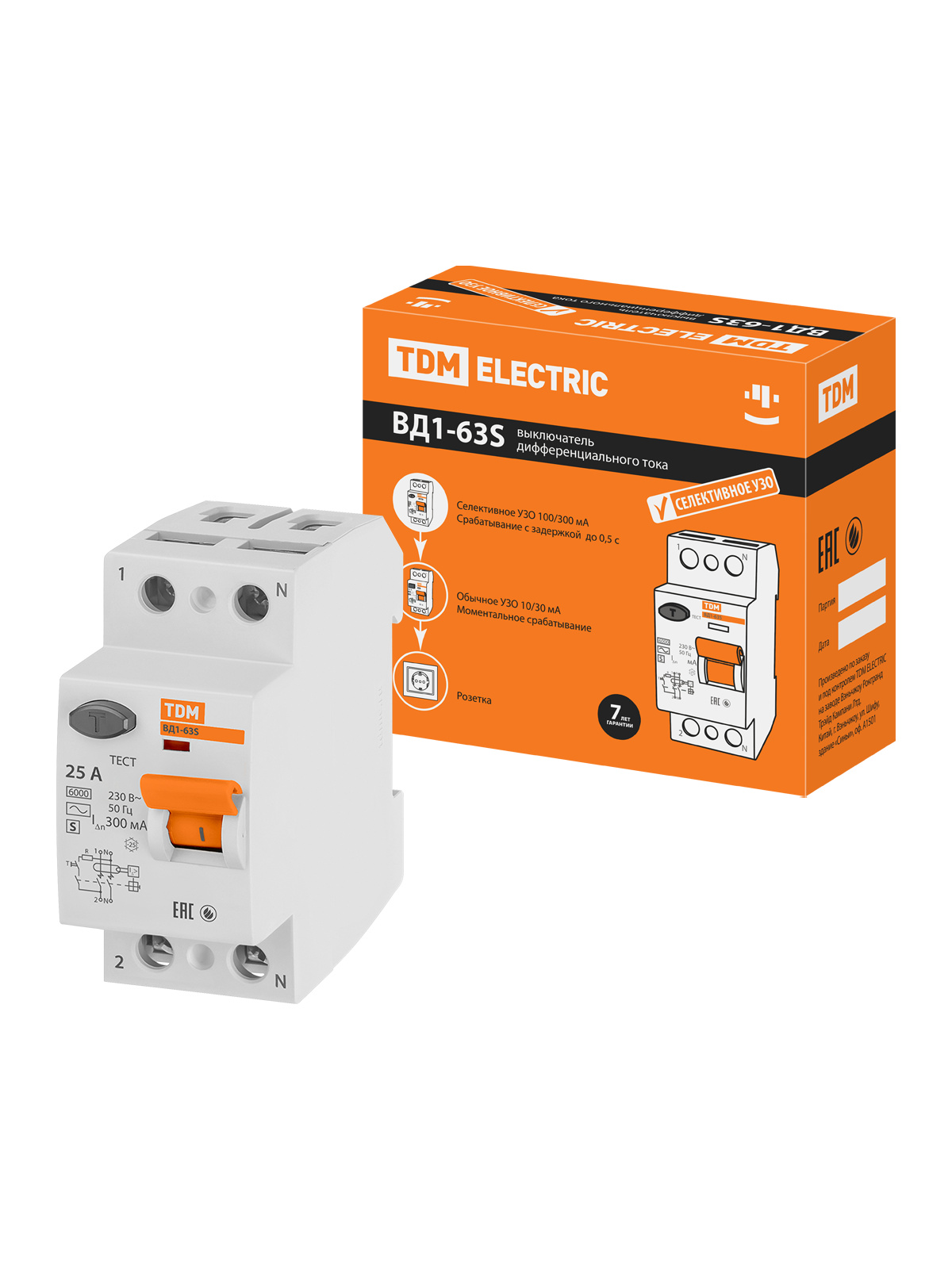Наименование: УЗО ВД1-63S 2Р 25А 300мА TDM