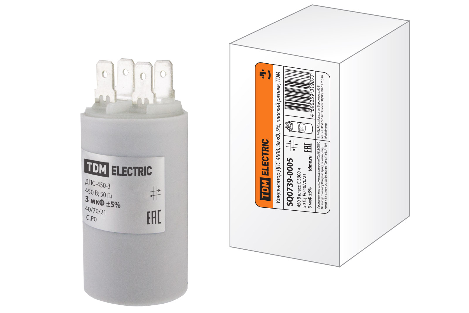 Наименование: Конденсатор ДПС 450В, 3мкФ, 5%, плоский разъем, TDM