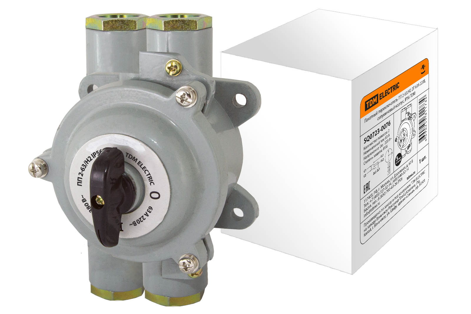 Наименование: Пакетный переключатель ПП 2-63/Н2 2П 63А 220В, силуминовый корпус, IP56 TDM