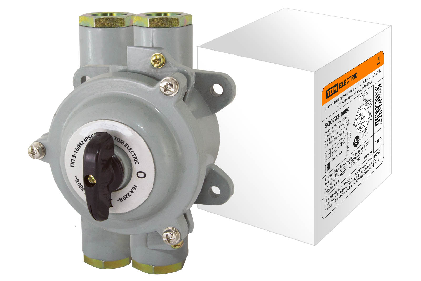 Наименование: Пакетный переключатель ПП 3-16/Н2 3П 16А 220В, силуминовый корпус, IP56 TDM