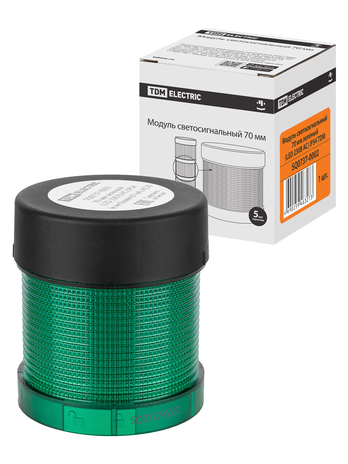 Наименование: Модуль светосигнальный 70 мм зеленый (LED 230В AC) IP54 TDM