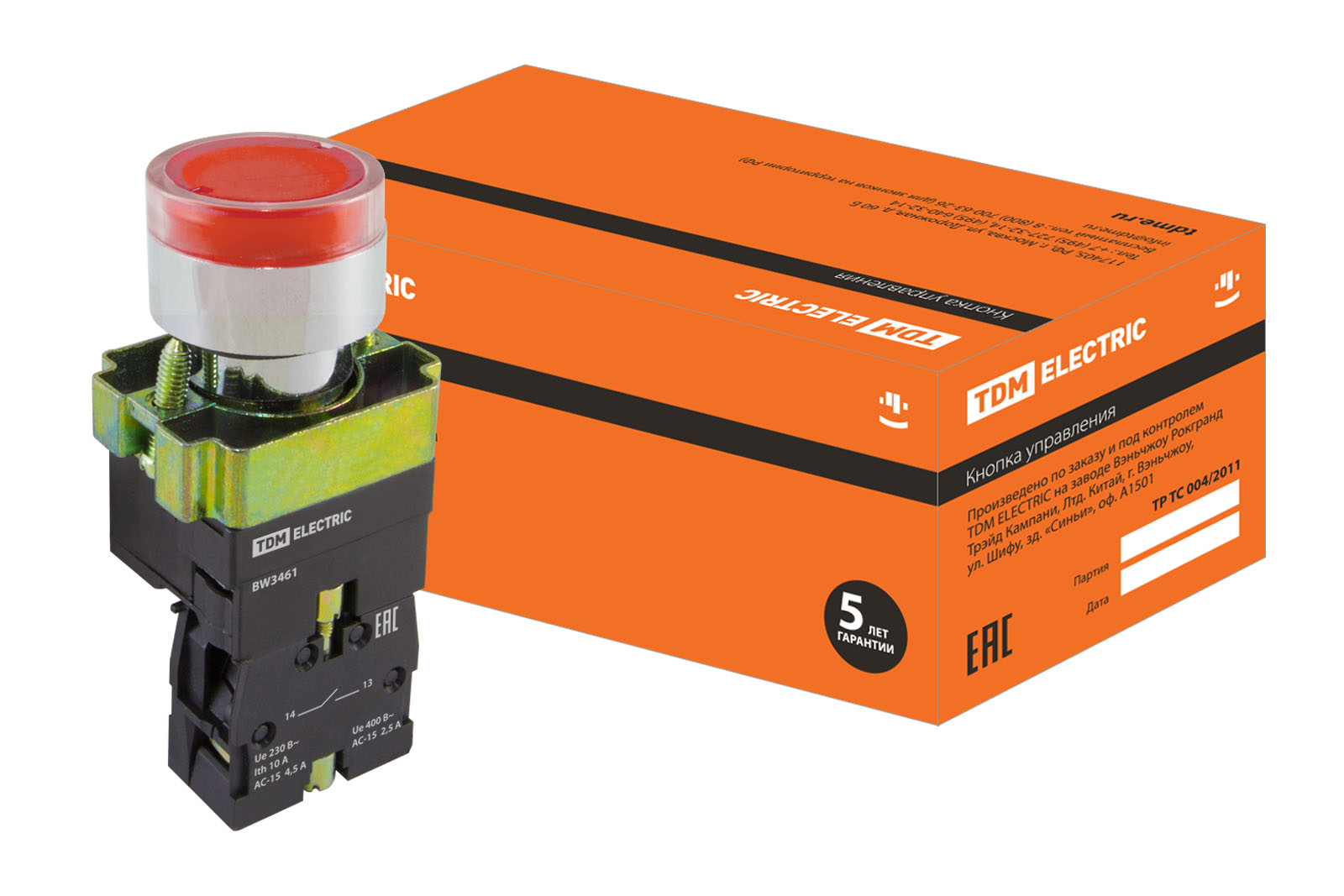 Наименование: Кнопка SB2-BW3461 с возвратом, 1НО, d22 мм, 230 В LED, красная, IP40 TDM