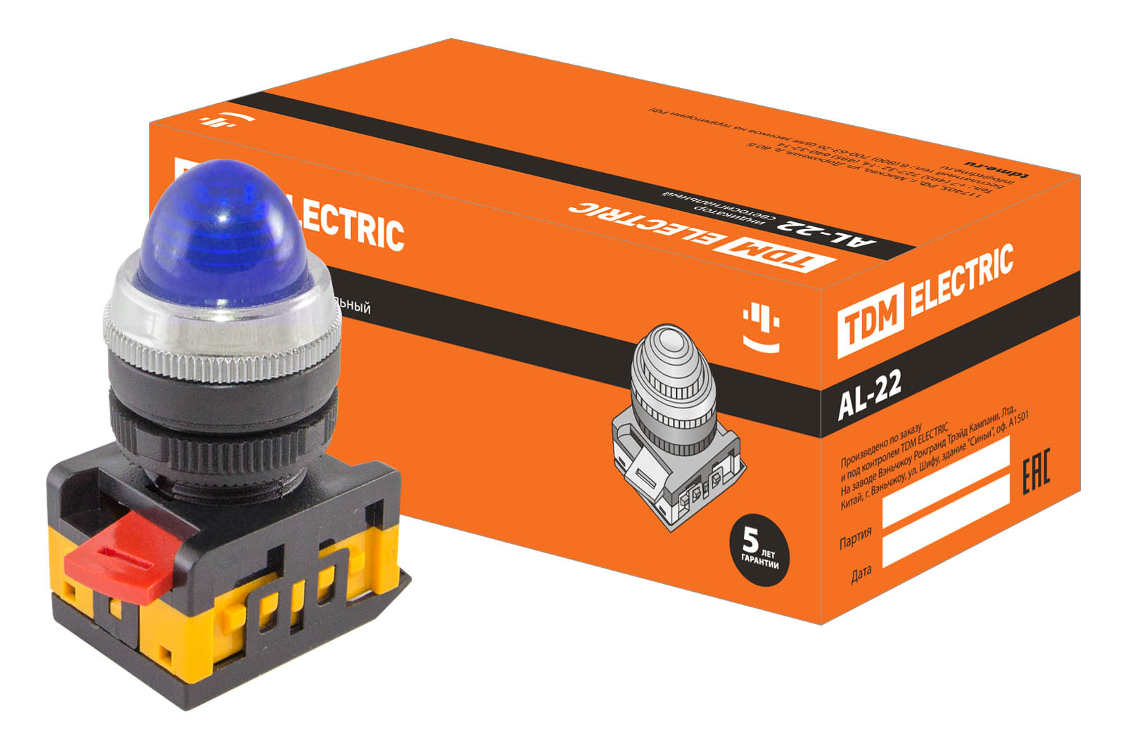 Наименование: Лампа AL-22 сигнальная d22мм синий неон/230В цилиндр TDM