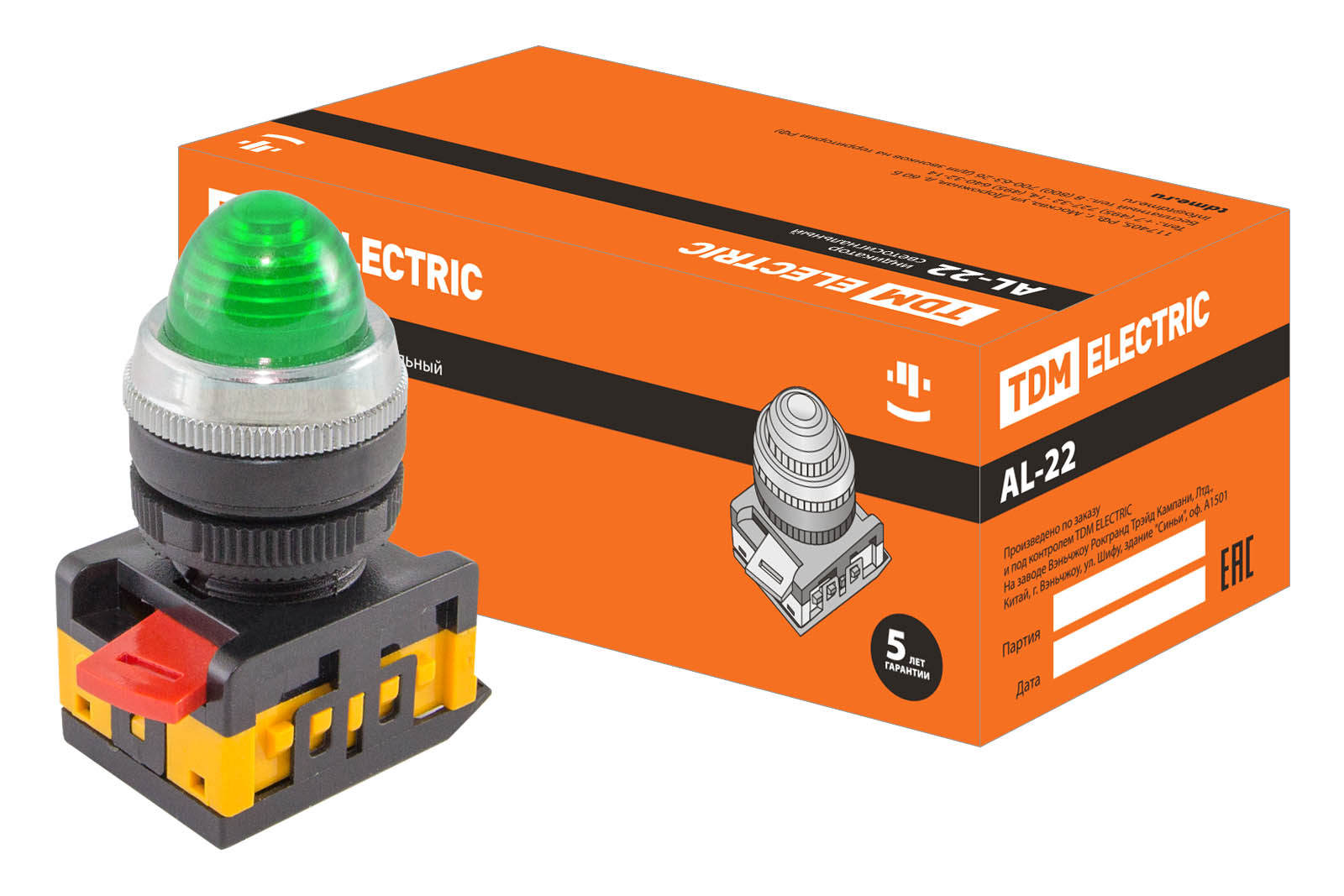 Наименование: Лампа AL-22 сигнальная d22мм зеленый неон/230В цилиндр TDM