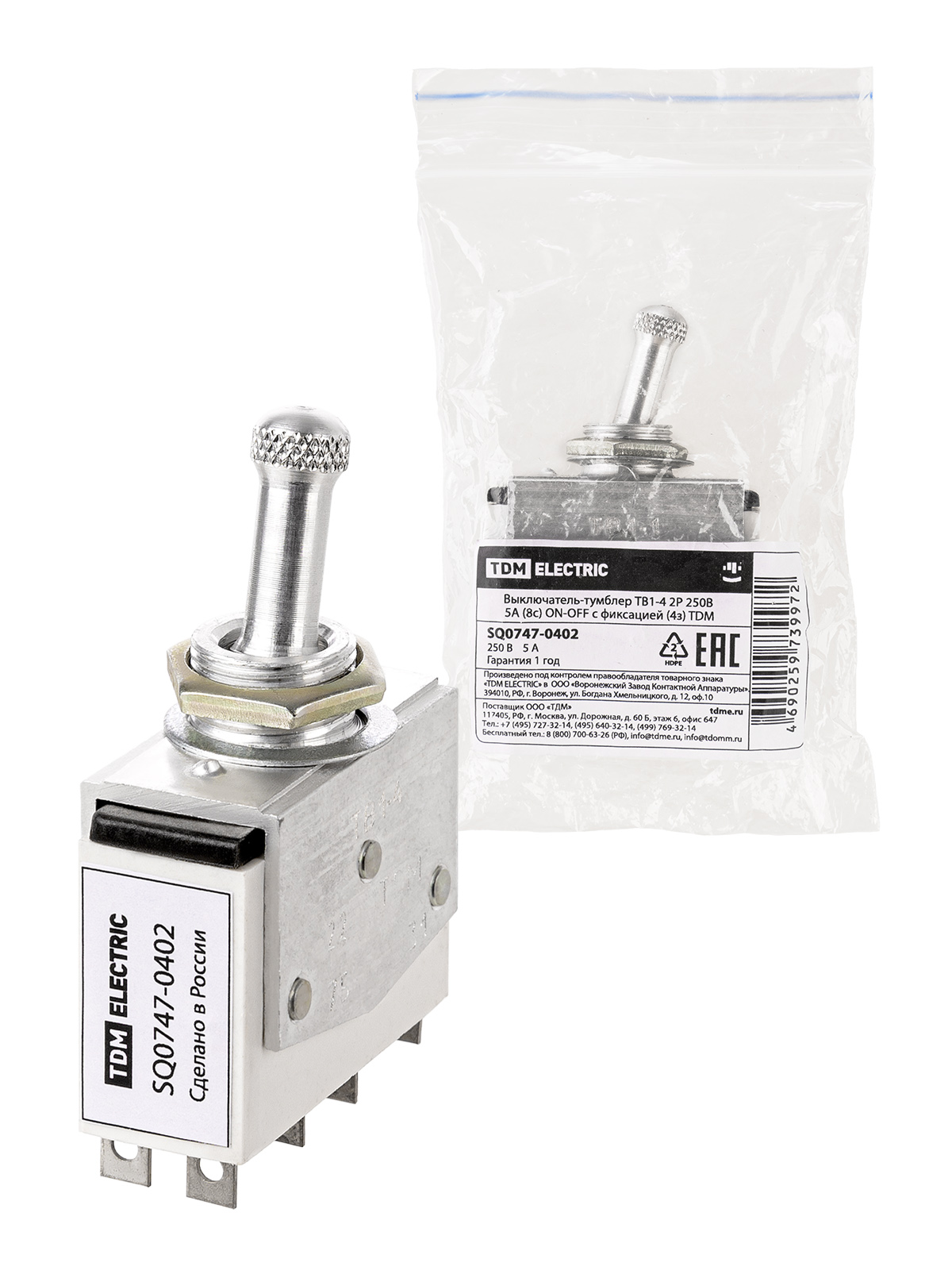 Наименование: Выключатель-тумблер ТВ1-4 2P 250 В 5 А (8c) ON-OFF с фиксацией (4з) TDM