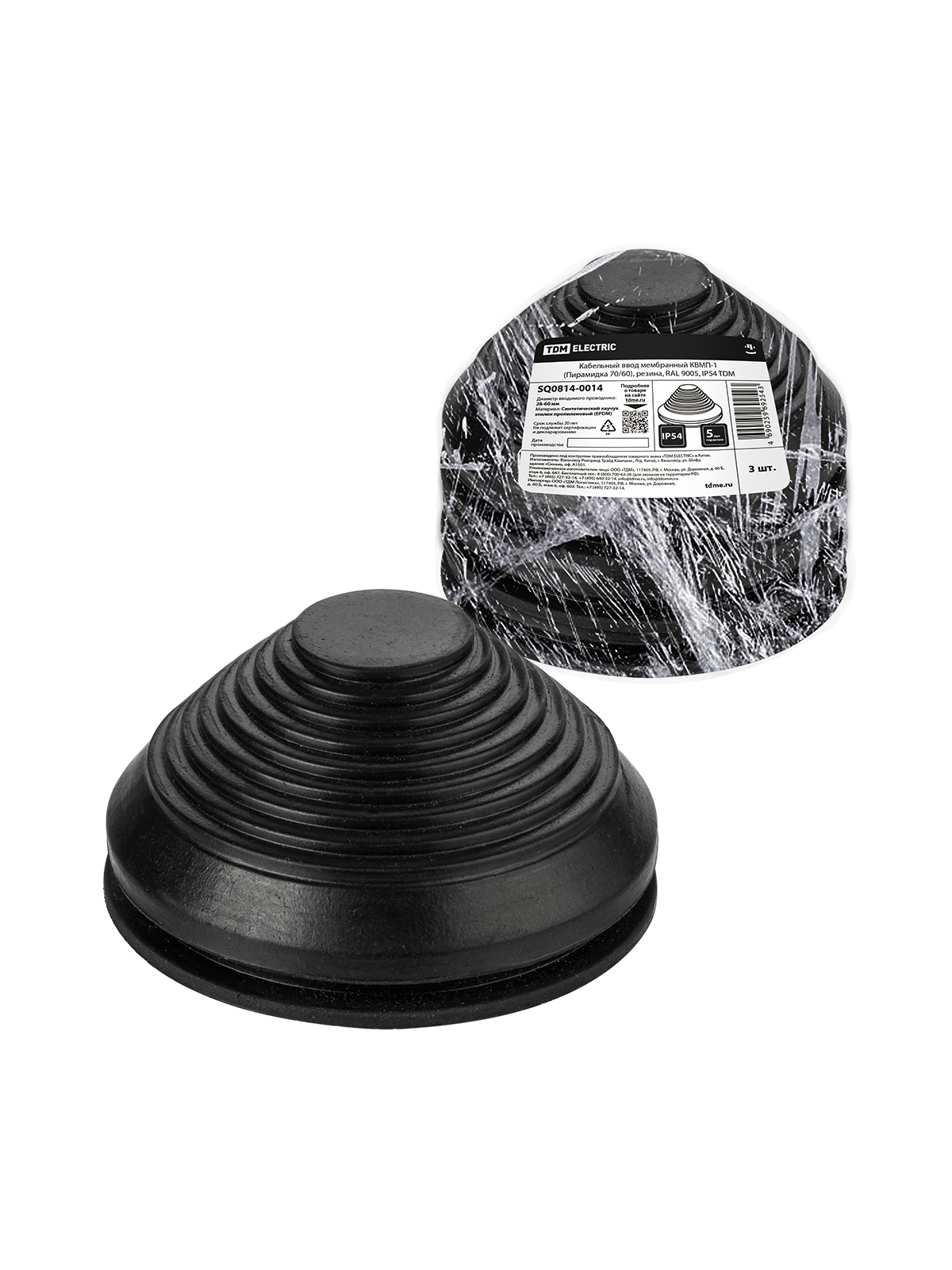 Наименование: Кабельный ввод мембранный КВМП-1 (Пирамидка 70/60), резина, RA L9005, IP54 TDM