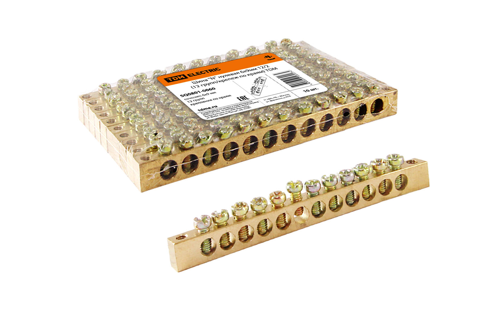Наименование: Шина "N" нулевая 6х9мм 12/2 (12 групп/крепеж по краям) TDM