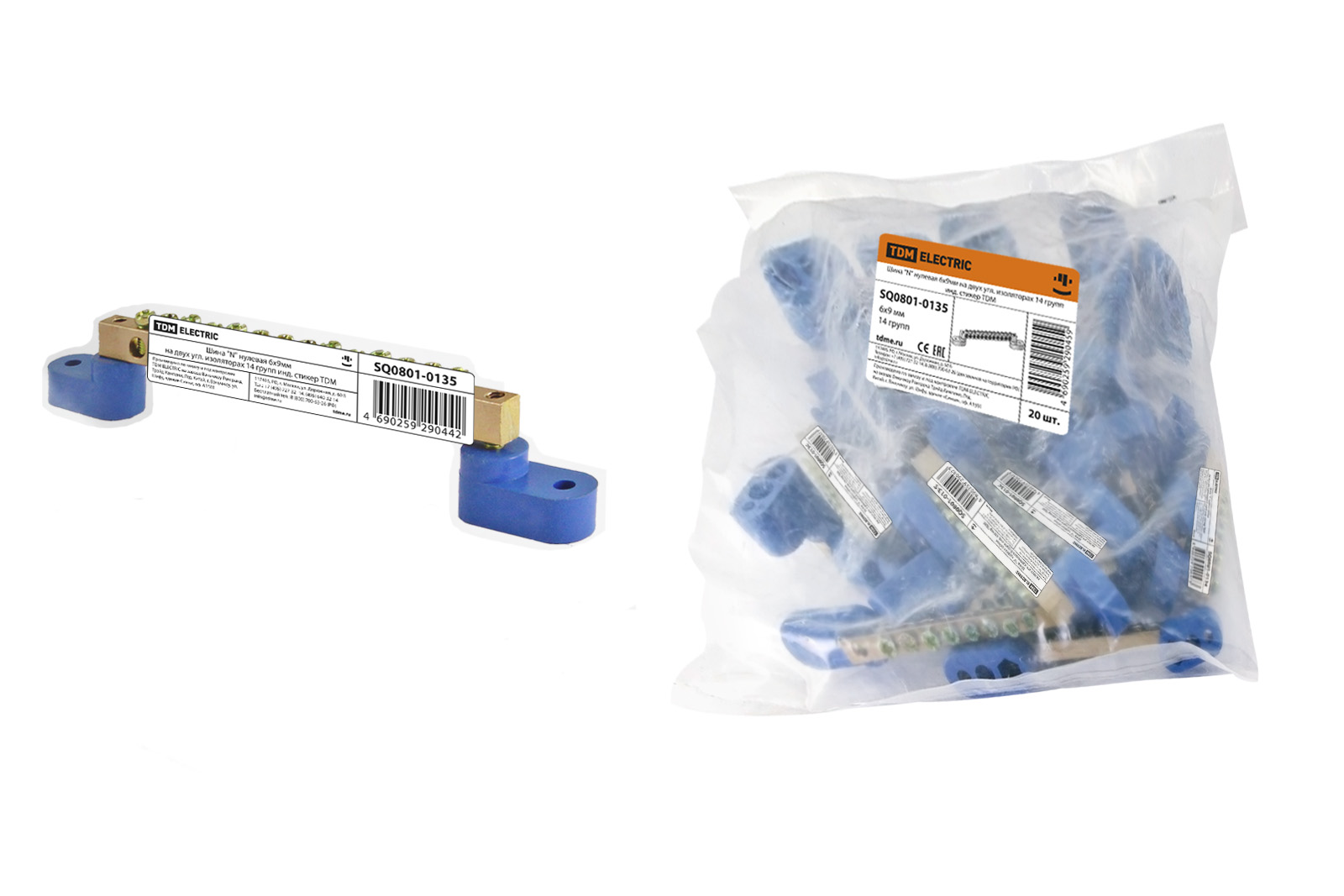 Наименование: Шина "N" нулевая 6х9мм на двух угл. изоляторах 14 групп инд. стикер TDM