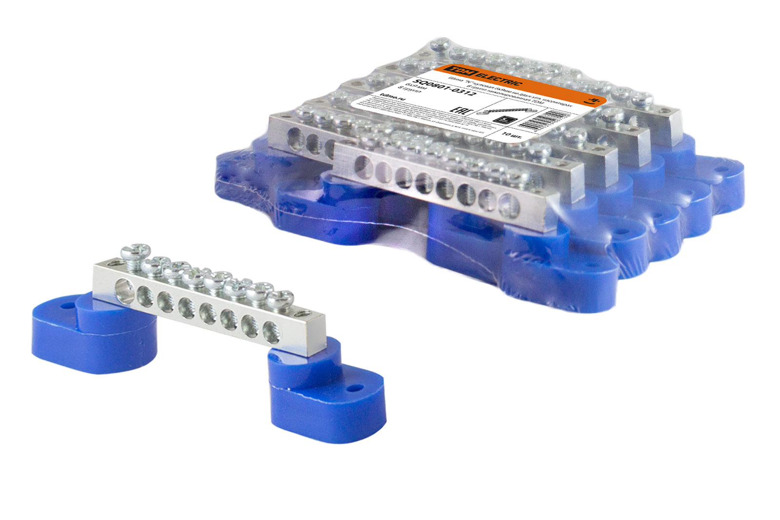 Наименование: Шина "N" нулевая 6х9мм на двух угл. изоляторах 8 групп никелированная TDM