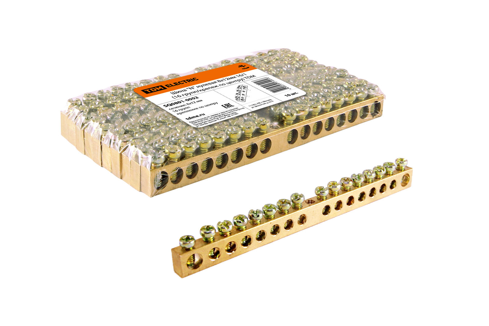 Шина "N" нулевая 8х12мм 16/1 (16 групп/крепеж по центру) TDM