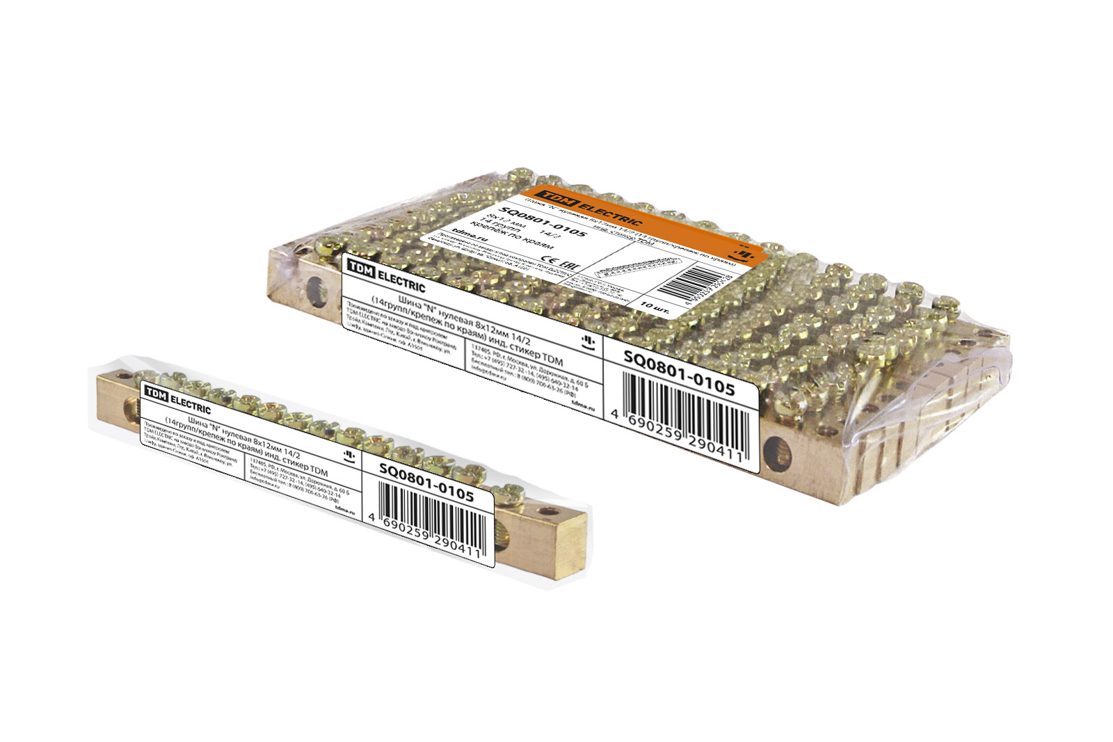 Наименование: Шина "N" нулевая 8x12мм 14/2 (14 групп/крепеж по краям) инд. стикер TDM