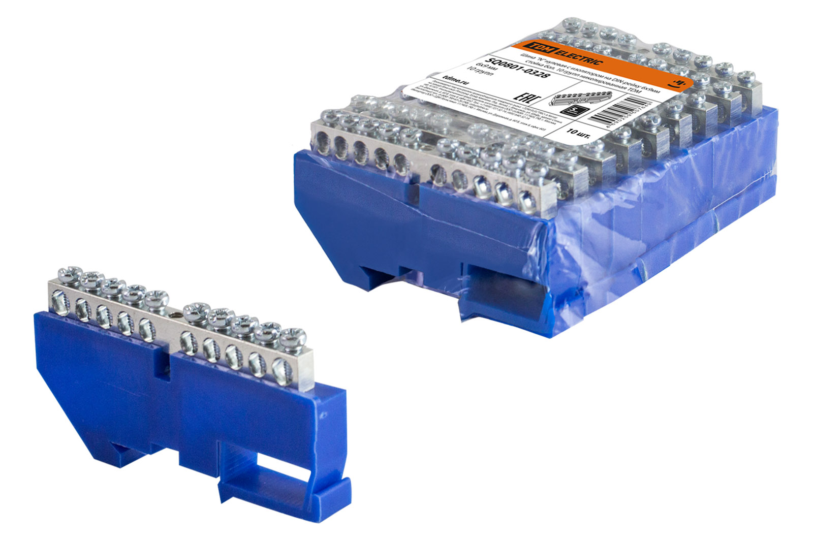 Наименование: Шина "N" нулевая с изолятором на DIN-рейку 6х9мм стойка бол. 10 групп никелированная TDM