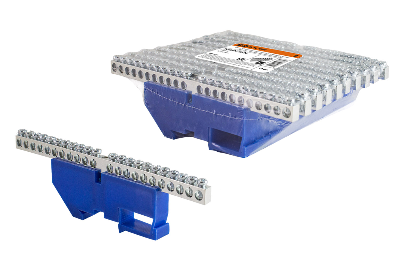 Шина "N" нулевая с изолятором на DIN-рейку 6x9мм стойка бол. 22 групп никелированная TDM