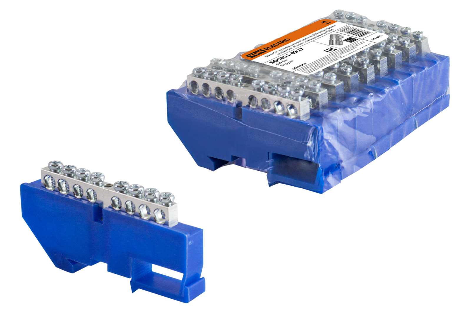 Наименование: Шина "N" нулевая с изолятором на DIN-рейку 6x9мм стойка бол. 8 групп никелированная TDM