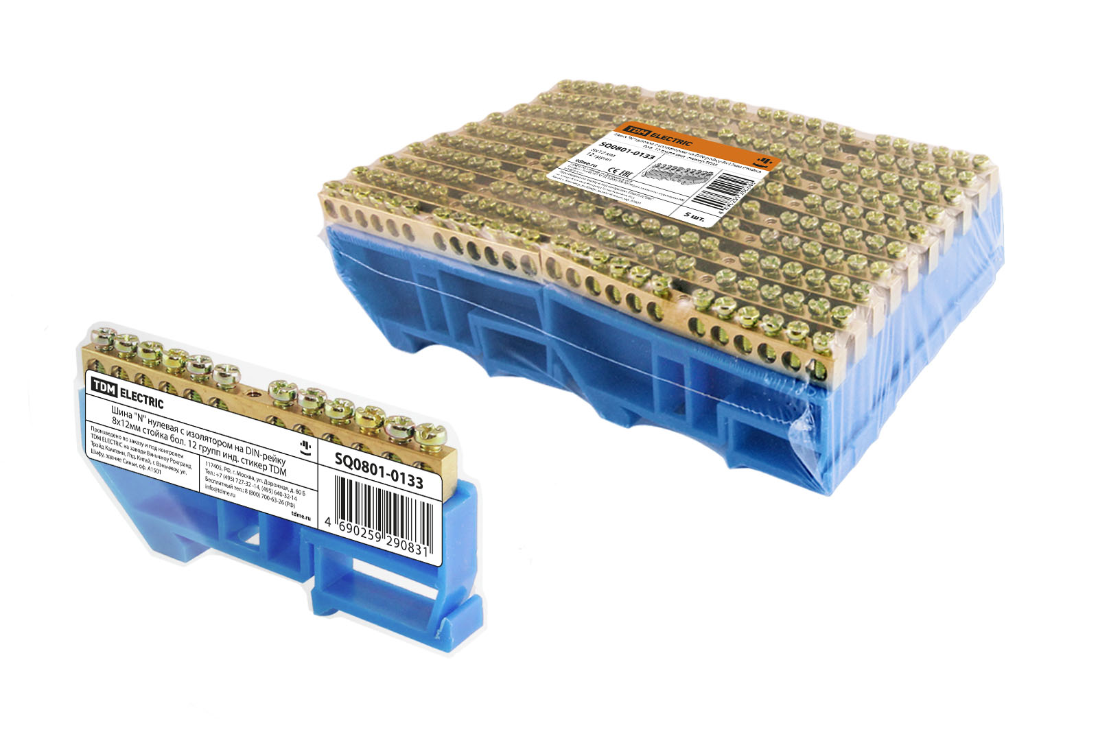 Наименование: Шина "N" нулевая с изолятором на DIN-рейку 8x12мм стойка бол. 12 групп инд. стикер TDM