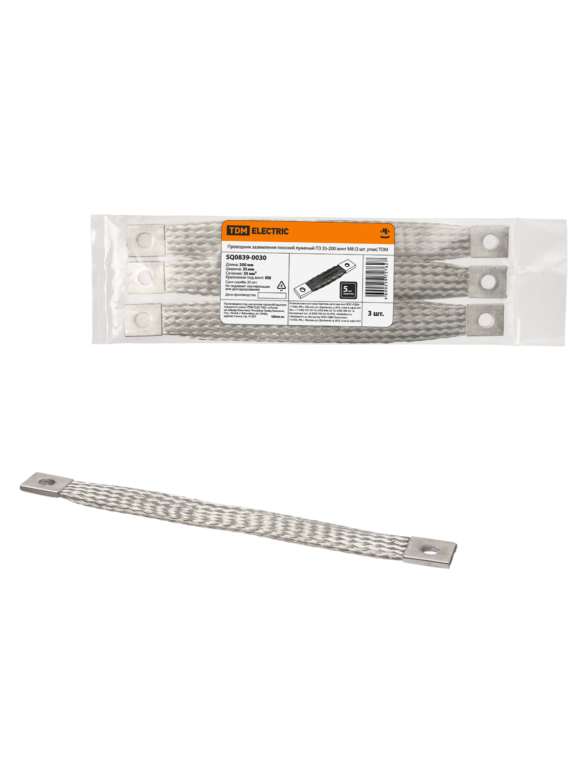 Наименование: Проводник заземления плоский луженый ПЗ 35-200 (3 шт. упак) ТDM