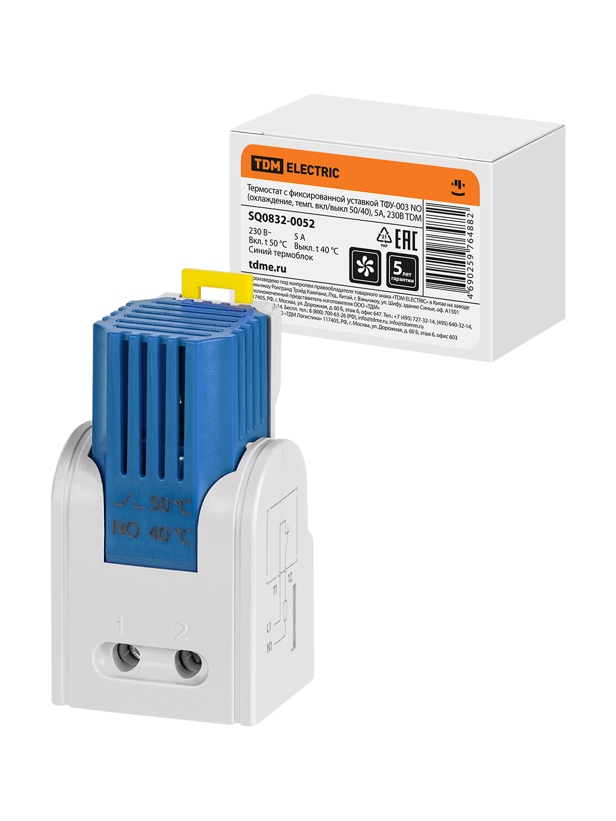 Наименование: Термостат с фиксированной уставкой ТФУ-003 NО (охлаждение, темп. вкл/выкл 50/40), 5 А, 230 В TDM