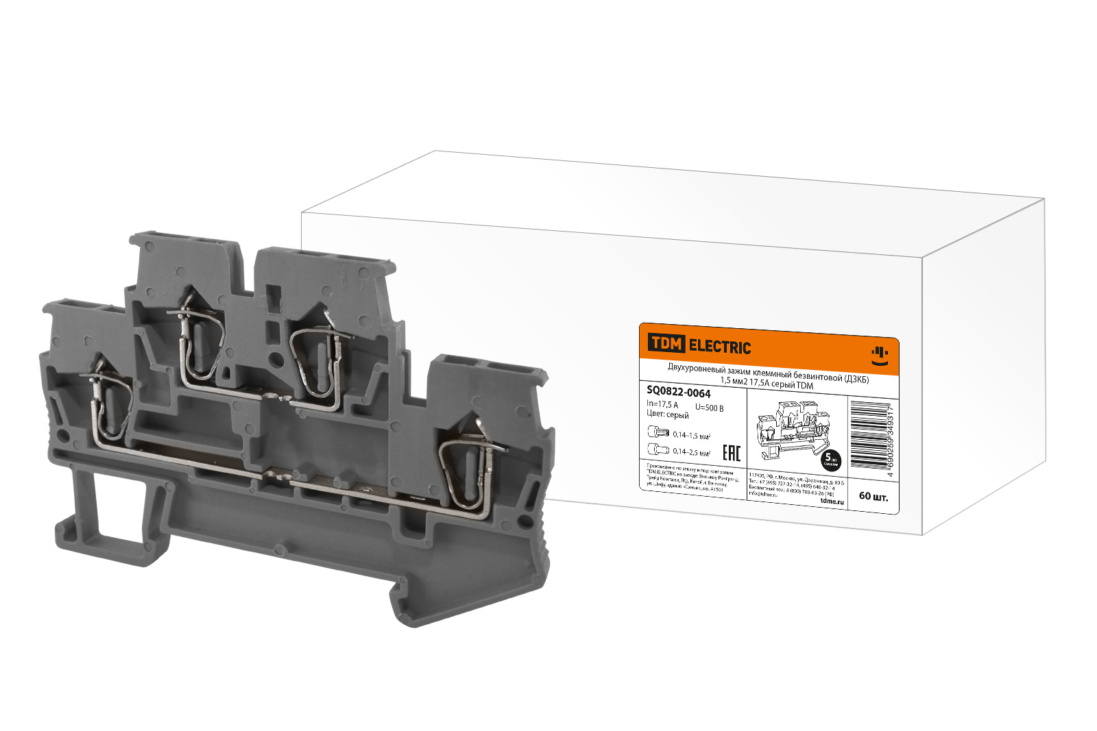 Наименование: Двухуровневый зажим клеммный безвинтовой (ДЗКБ) 1,5 мм2 17,5А серый TDM