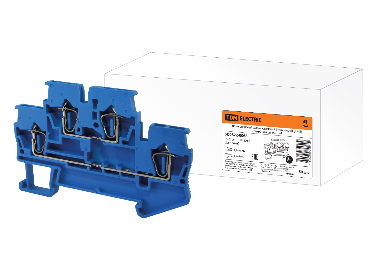 Наименование: Двухуровневый зажим клеммный безвинтовой (ДЗКБ) 2,5 мм2 31А синий TDM