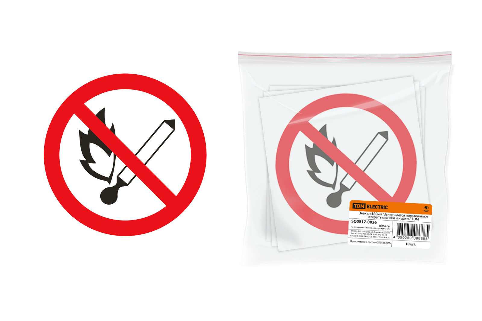 Наименование: Знак d=180мм "Запрещается пользоваться открытым огнём и курить" TDM