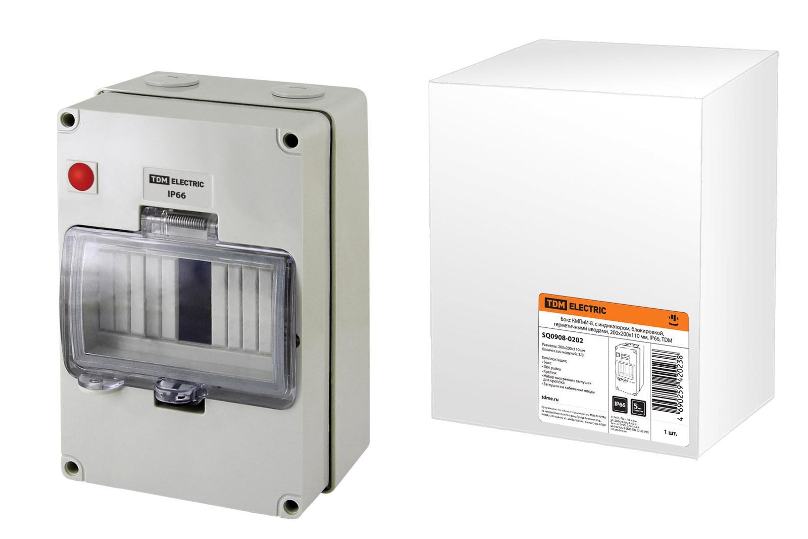 Наименование: Бокс КМПнИ-8, с индикатором, блокировкой, герметичными вводами, 200х200х110 мм, IP66, TDM