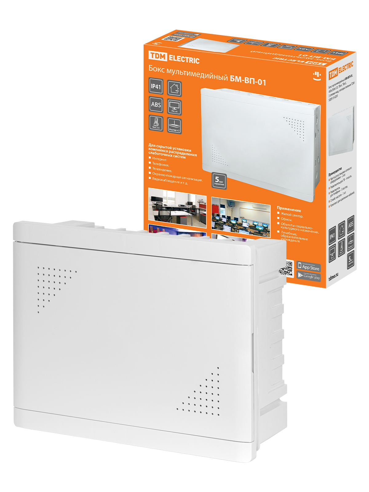 Наименование: Бокс мультимедийный БМ-ВП-01, 420х320х150, ТВх4, ТФх5, 2 сетевых мод., колодка питания TDM