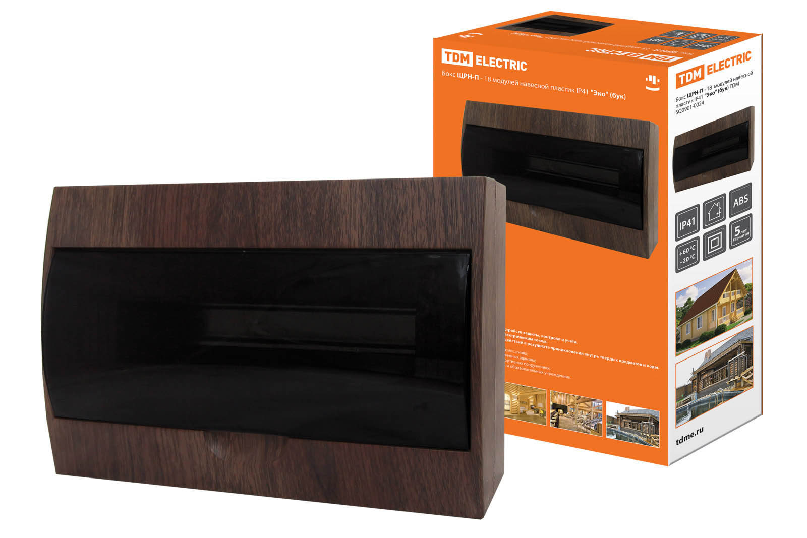 Наименование: Бокс ЩРН-П-18 модулей навесной пластик IP41 "Эко" (бук) TDM