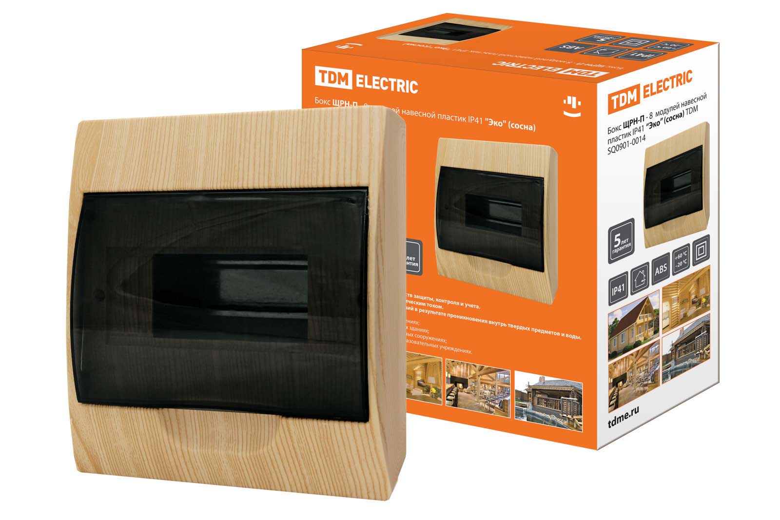 Наименование: Бокс ЩРН-П-8 модулей навесной пластик IP41 "Эко" (сосна) TDM