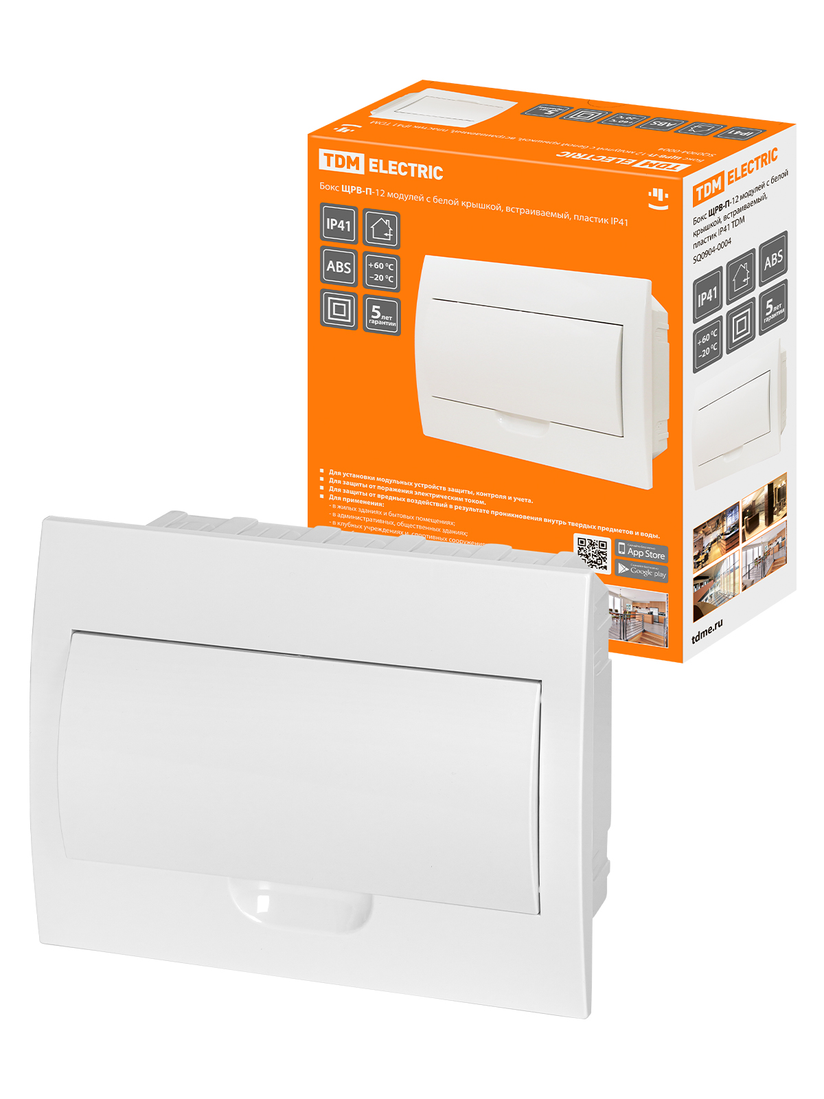 Наименование: Бокс ЩРВ-П-12модулей с белой крышкой, встраиваемый, пластик IP41 TDM