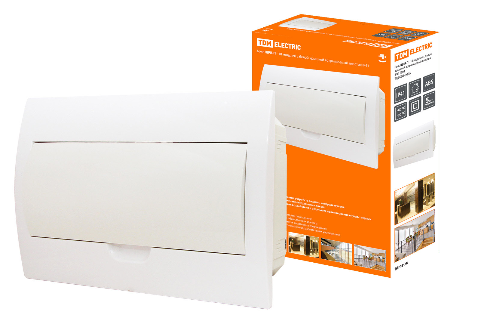 Наименование: Бокс ЩРВ-П-18модулей с белой крышкой,встраиваемый, пластик IP41 TDM