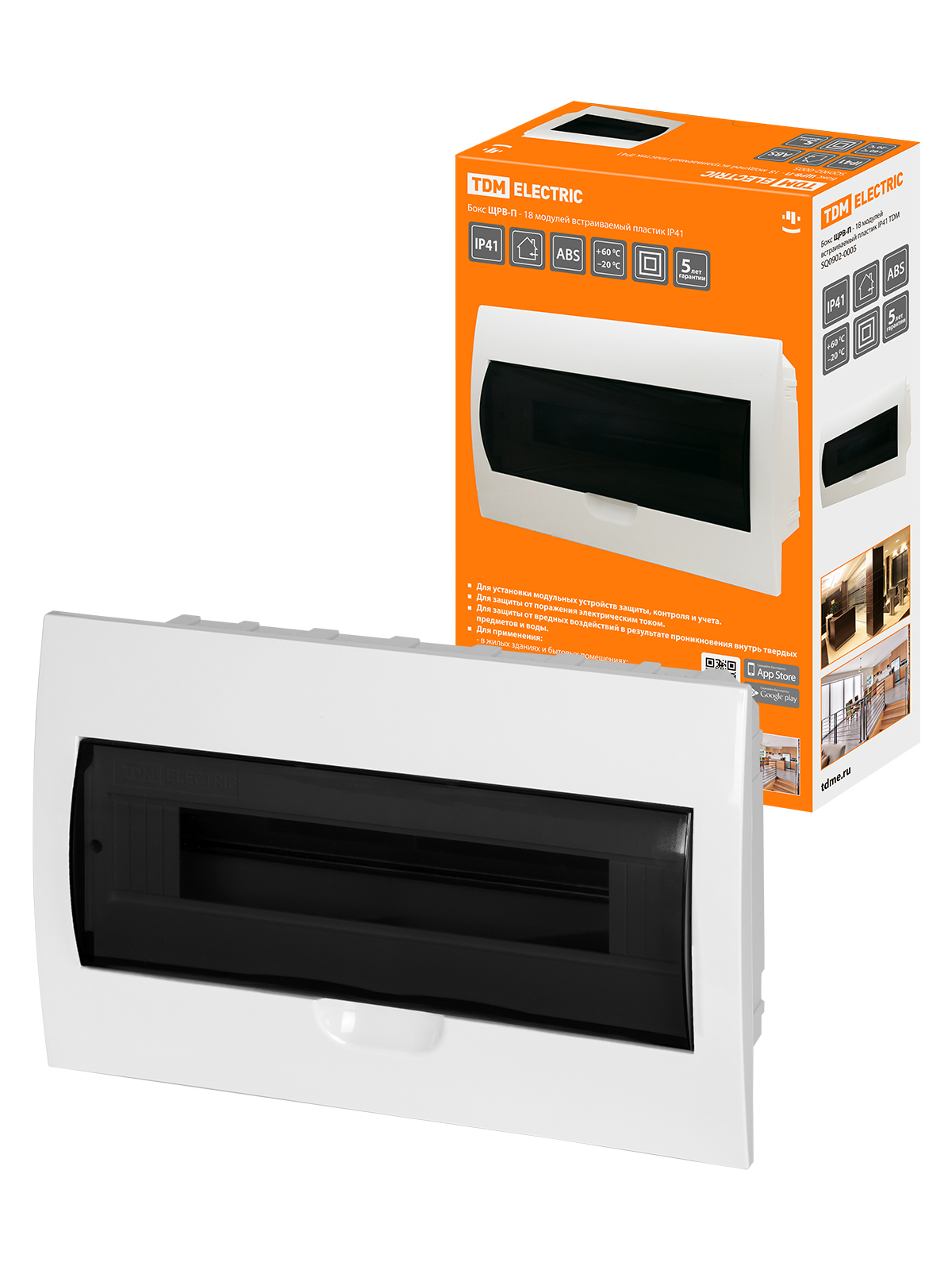 Наименование: Бокс ЩРВ-П-18модулей встраиваемый пластик IP41 TDM