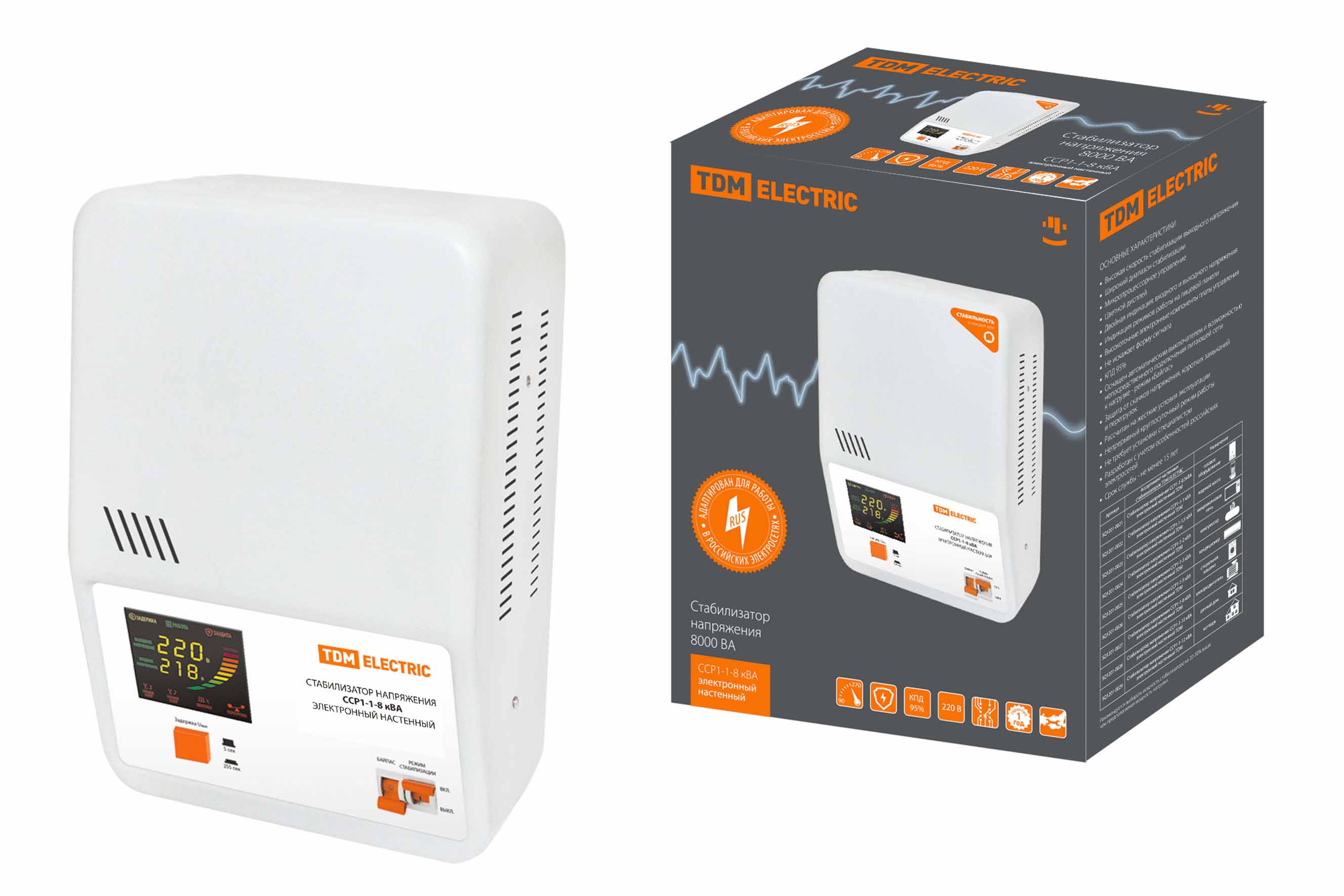 Наименование: Стабилизатор напряжения ССР1-1-8 кВА электронный настенный TDM