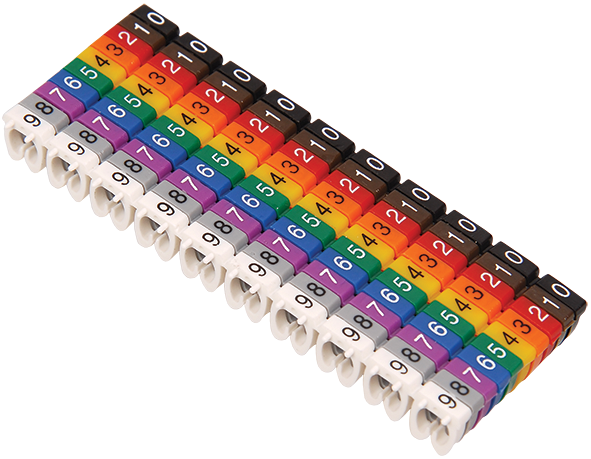 Преимущества: При помощи зубцов и пазов возможно соединение нескольких маркеров между собой Монтируется на кабель простым защелкиванием Материал не содержит галогенов
