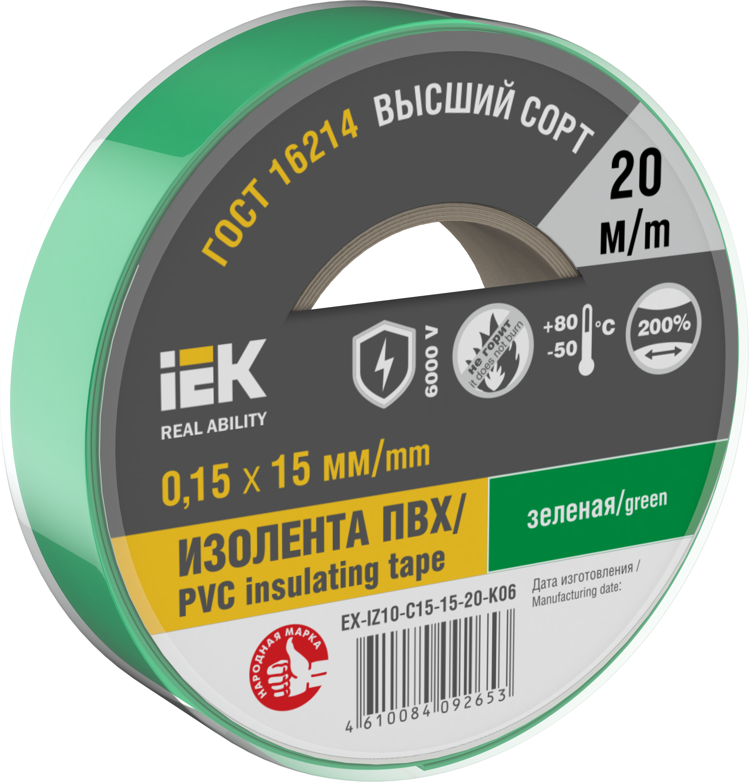 Наименование: MIXTAPE 7 Изолента 0,15х15мм зеленая 20м IEK