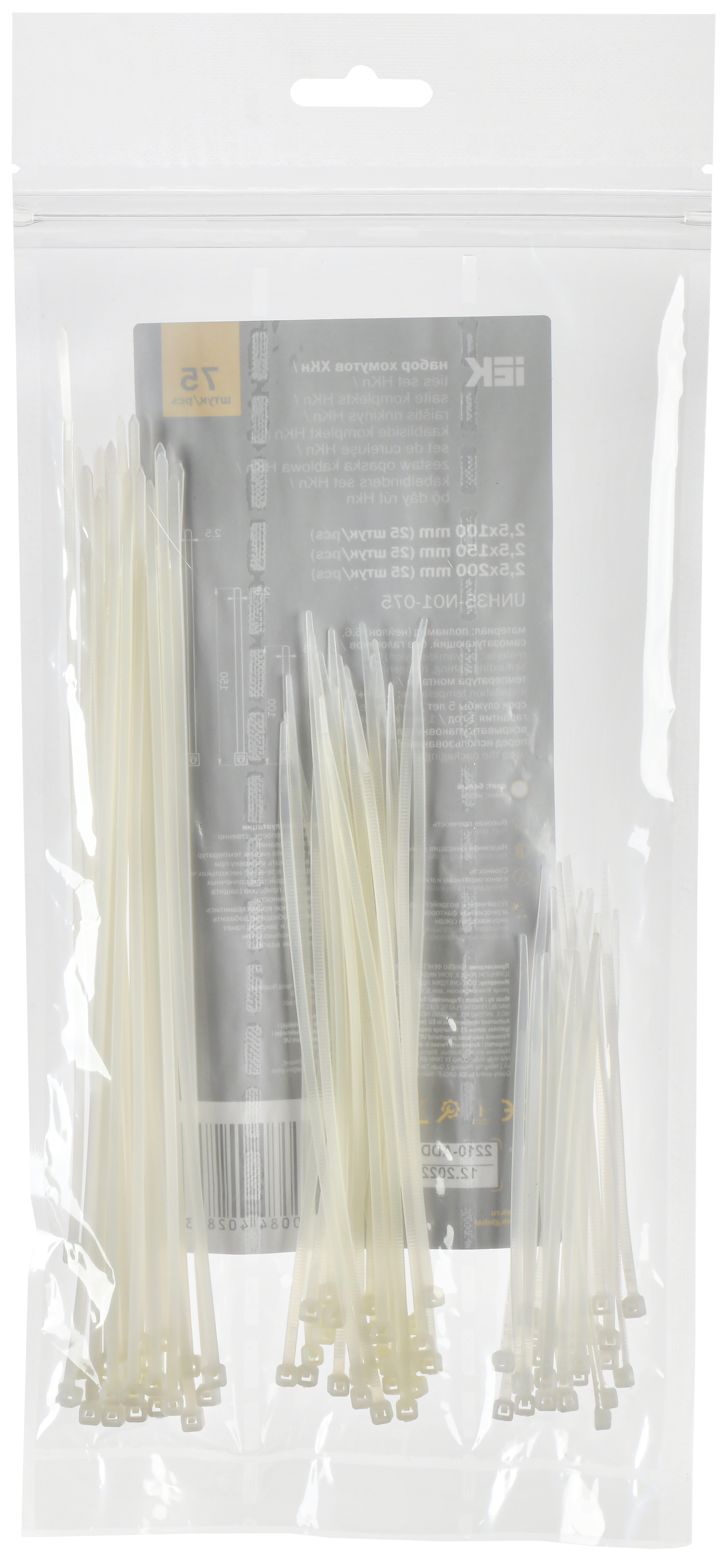 Наименование: Набор хомутов 2,5х100; 2,5х150; 2,5х200 белые (75шт/упак) IEK