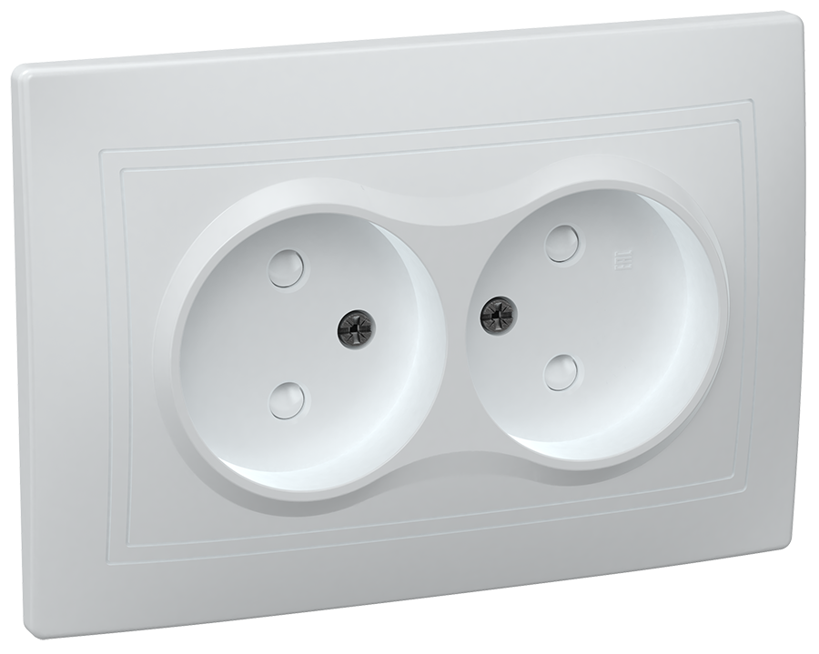Наименование: KVARTA Розетка 2-местная без заземления с защитными шторками 10А РСш12-2-КБ белый IEK