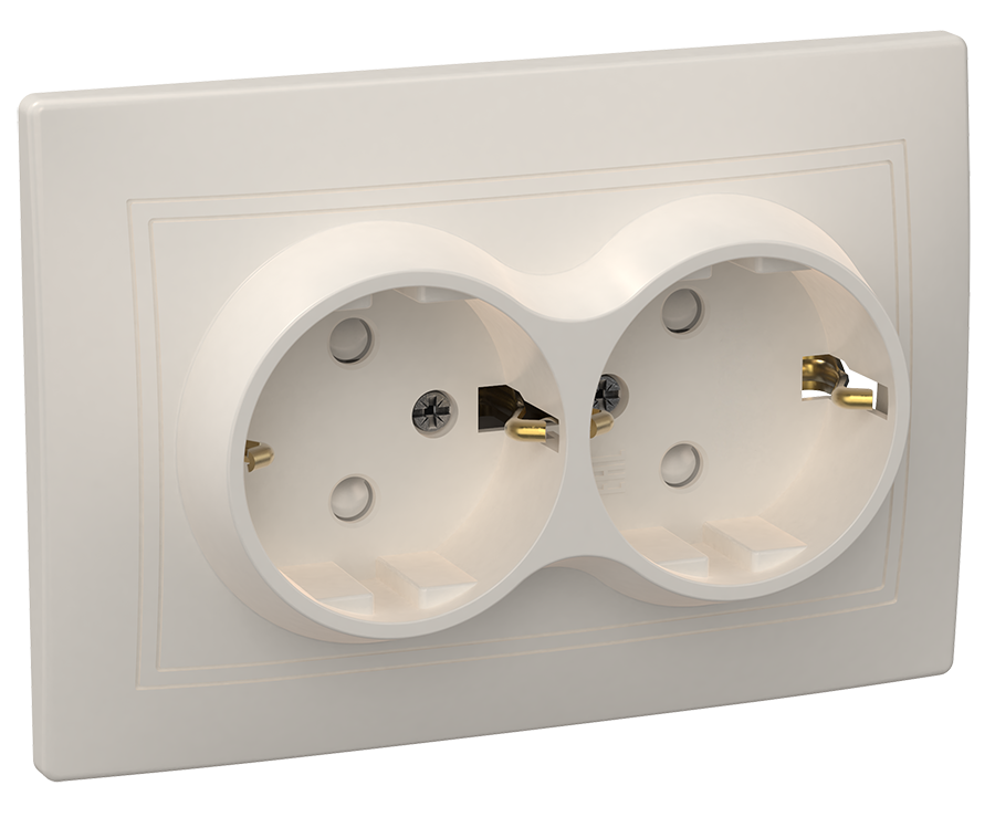 Наименование: KVARTA Розетка 2-местная с заземлением с защитными шторками 16А РСш12-3-ККм кремовый IEK