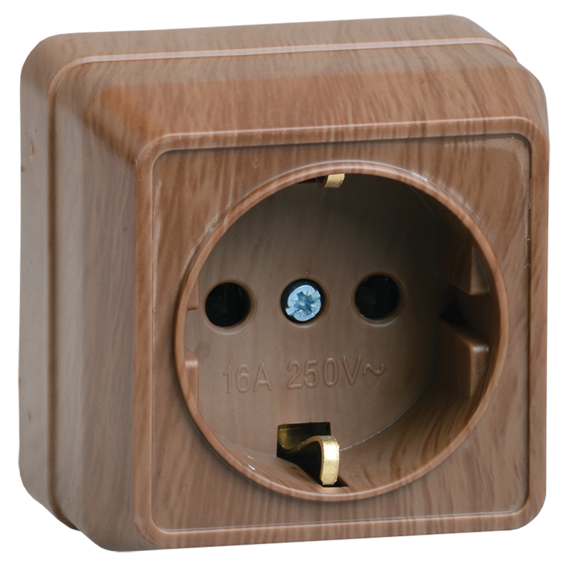 Наименование: OKTAVA Розетка 1-местная с заземлением для открытой установки 16А РС20-3-ОД дуб IEK