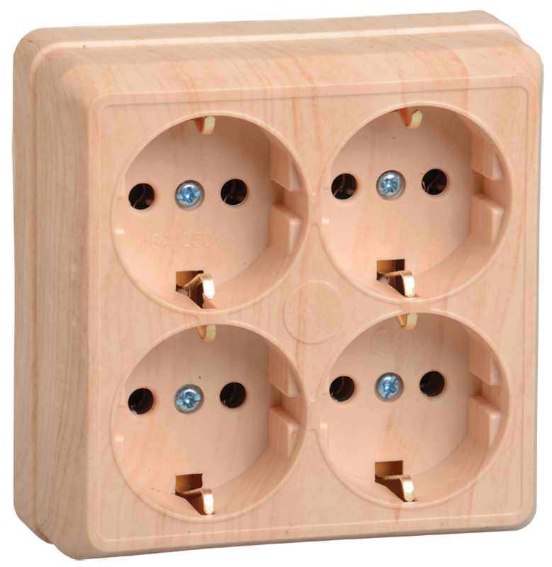 Наименование: OKTAVA Розетка 4-местная с заземлением для открытой установки 16А РС24-3-ОС сосна IEK