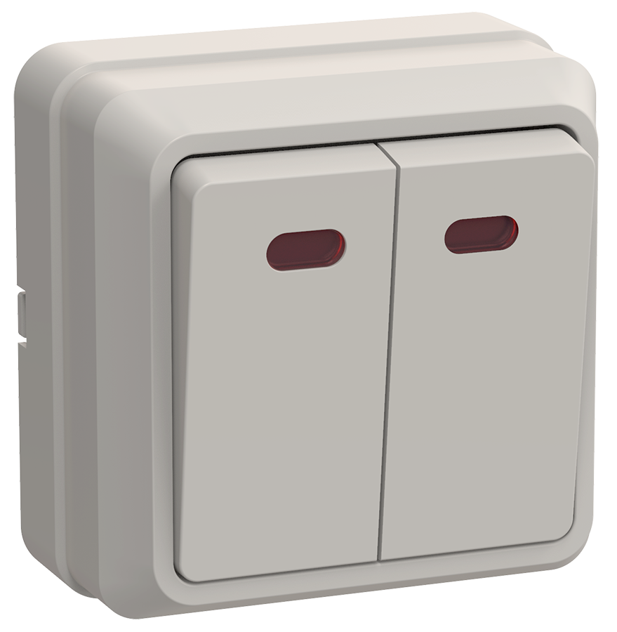 Наименование: OKTAVA Выключатель 2-клавишный с индикацией для открытой установки 10А ВС20-2-1-ОКм кремовый IEK