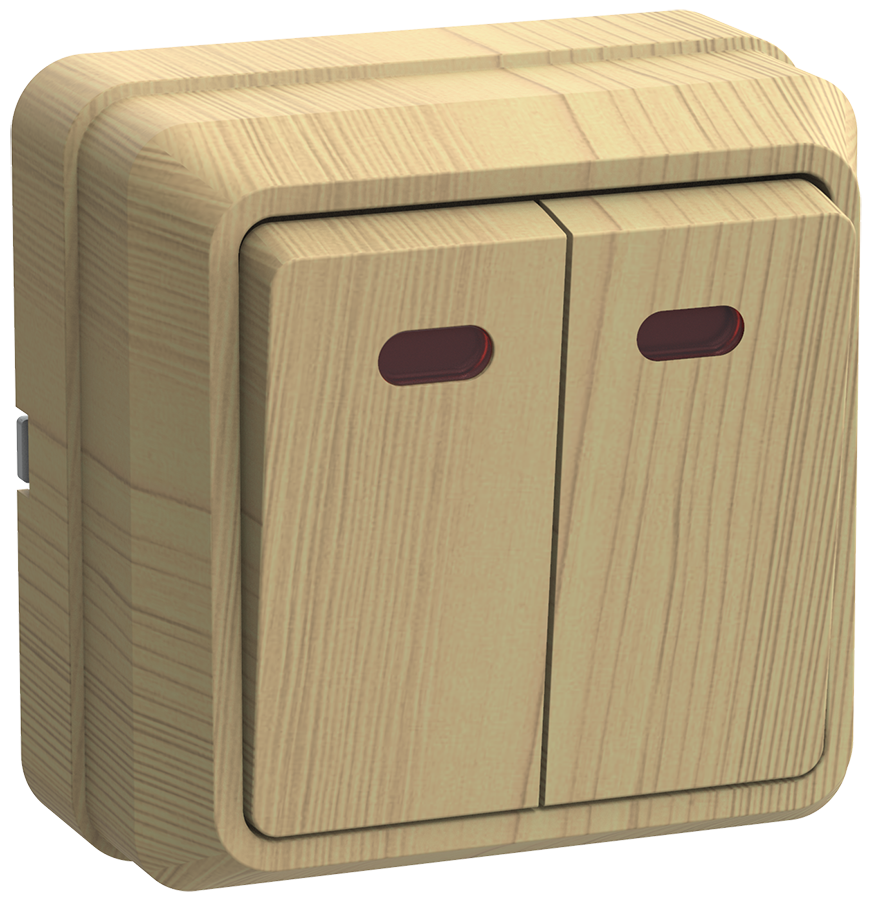 Наименование: OKTAVA Выключатель 2-клавишный с индикацией для открытой установки 10А ВС20-2-1-ОС сосна IEK