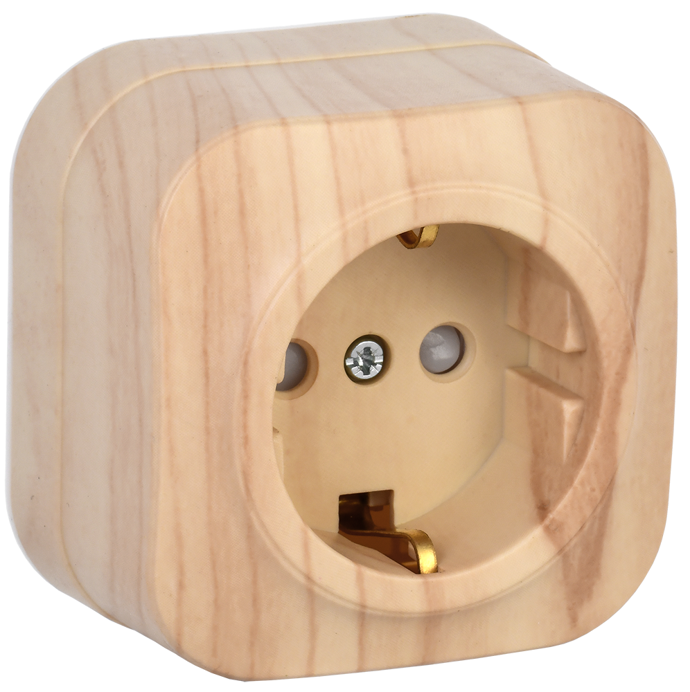Наименование: Розетка одноместная для открытой установки РСш20-3-ХС с заземлением и защитной шторкой 16А GLORY сосна IEK