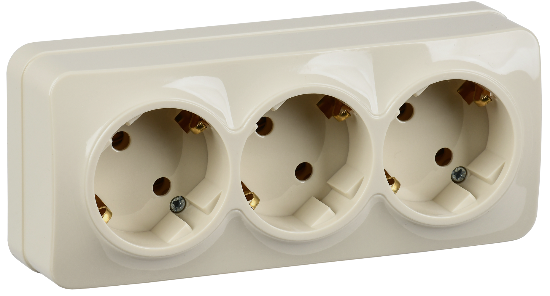 Наименование: Розетка трехместная для открытой установки РС23-3-ХК с заземлением 16А GLORY кремовый IEK