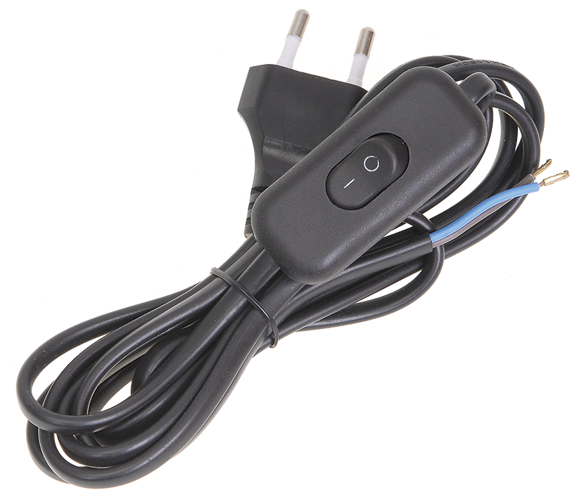 Наименование: Шнур УШ-1КВ опрессованный с вилкой со встроенным выключателем 2х0,75/2м черный IEK
