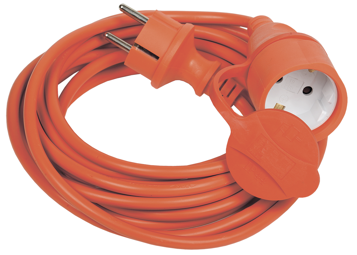 Преимущества: Степень защиты IP44 позволяет использовать удлинители вне помещений. Двойная изоляция провода выдерживает многочисленные перегибы, защищает кабель от пробоя и человека от поражения током.. Прочная литая круглая вилка. Розетка обеспечивает плотное соединение с вилкой. Ярко-оранжевый шнур легко заметен на любой поверхности.