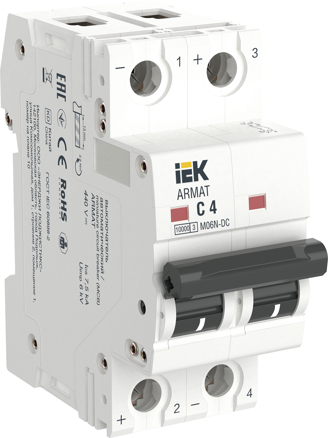 Наименование: ARMAT Автоматический выключатель M06N-DC 2P C 4А IEK