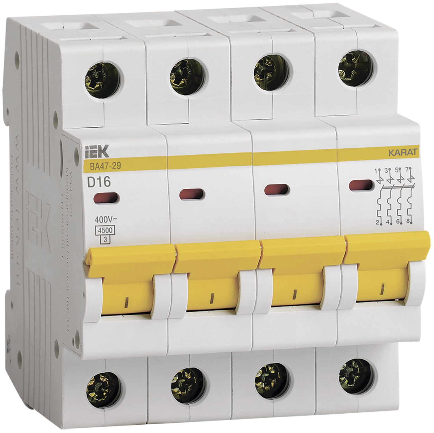 Наименование: KARAT Автоматический выключатель ВА47-29 4P D 16А 4,5кА IEK